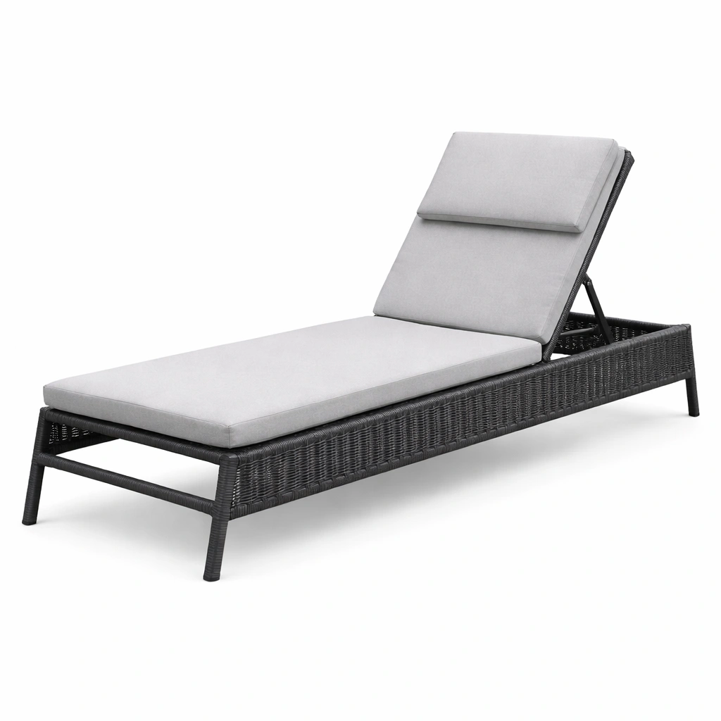 Tumbona de ratán sintético negro con cojín gris