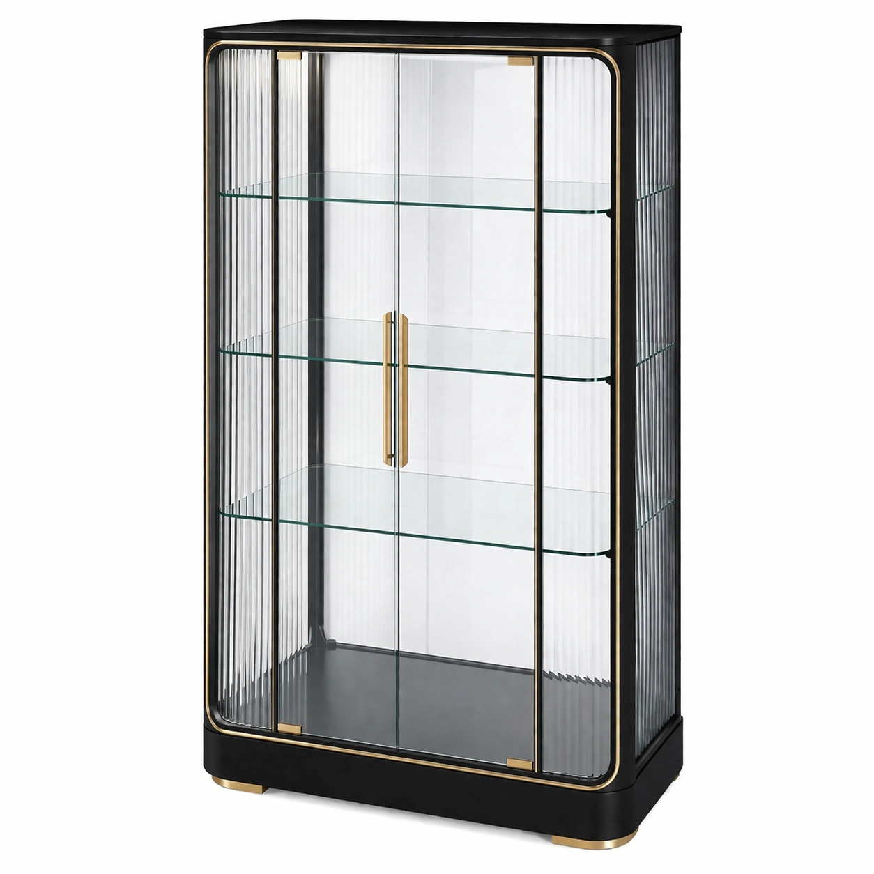 Vitrina de madera y vidrio templado negro dorado