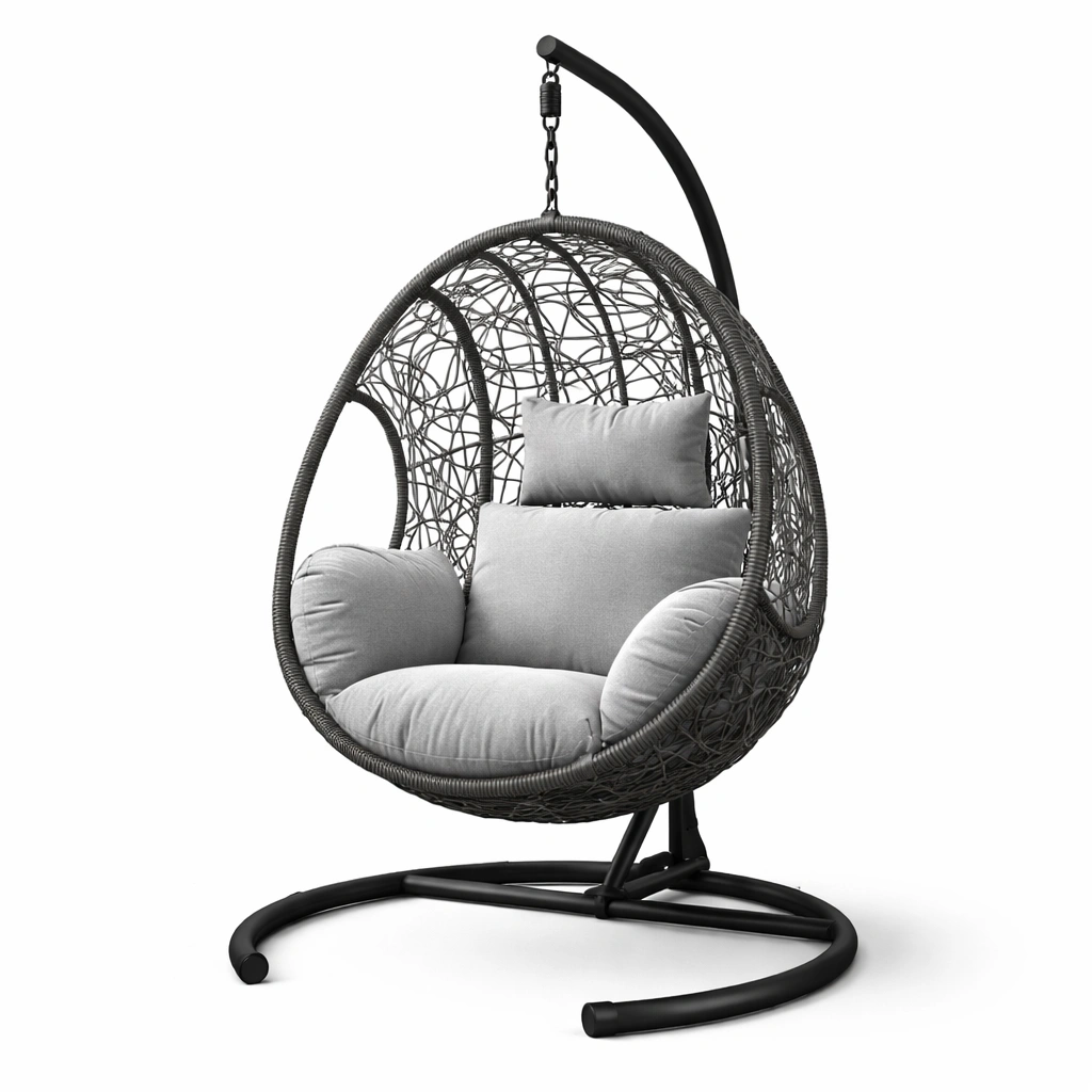 Silla colgante de ratán sintético con cojines de poliéster