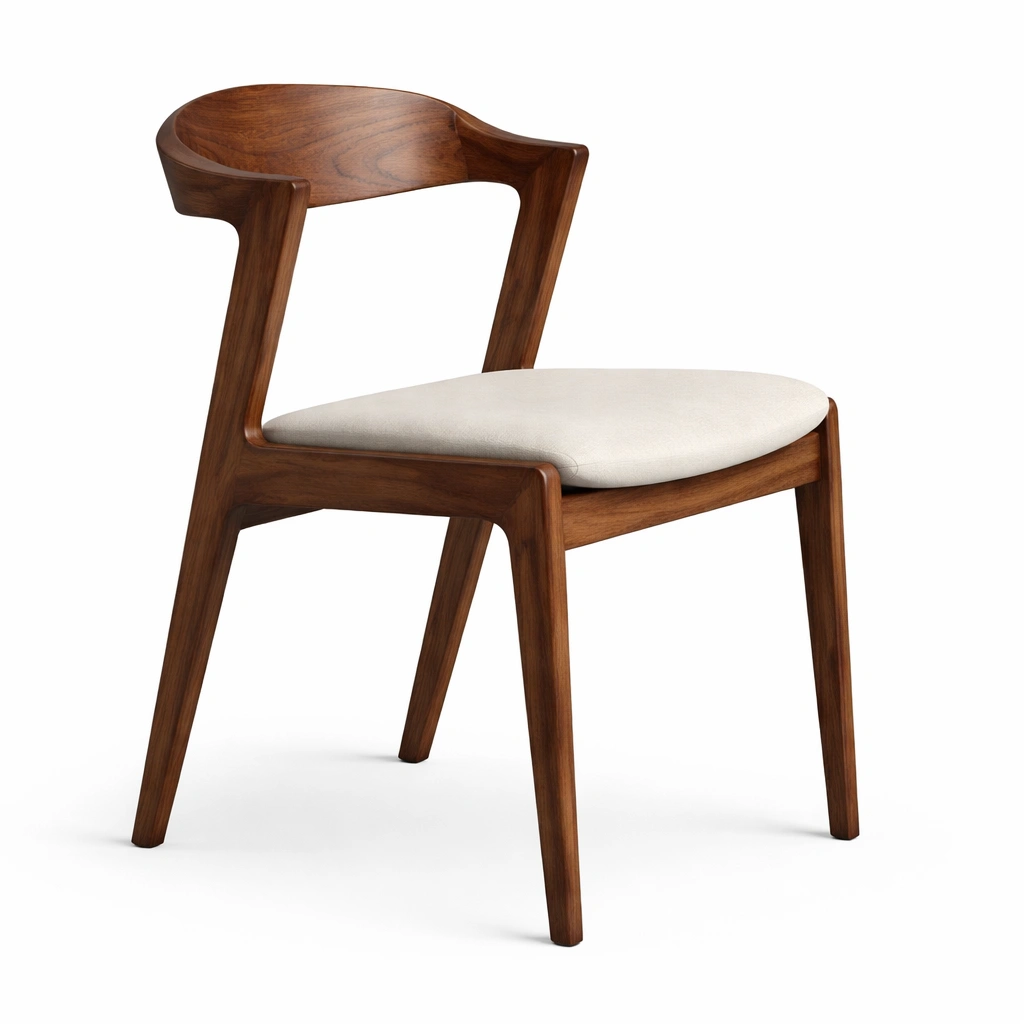 Silla de comedor de madera nogal con asiento beige