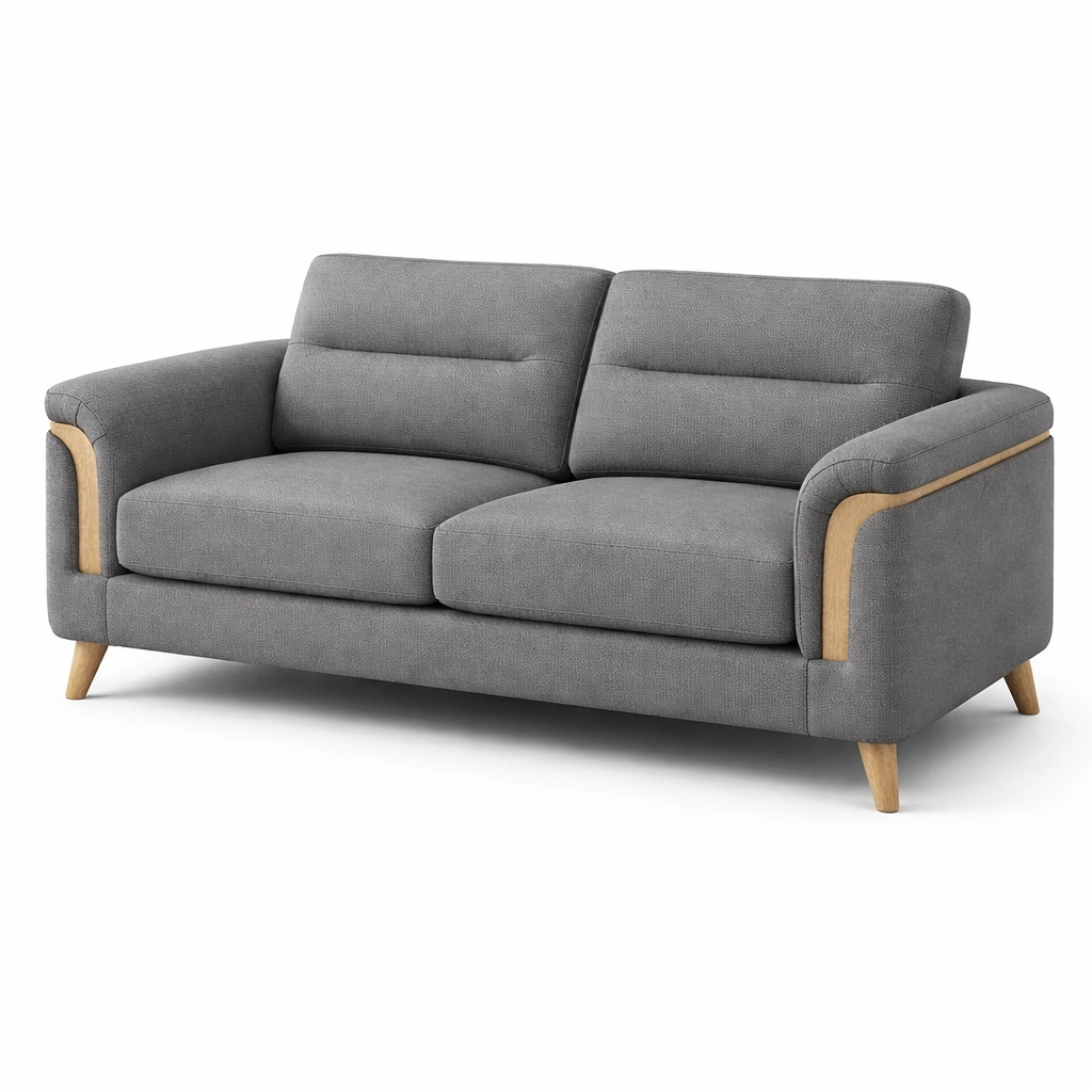 Sofá de 2 plazas de tela gris y madera 150x85x90 cm